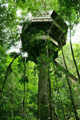 The community features houses built right on top of the trees in the Costa Rican rain forest, connected by zip lines and sky bridges. These tree houses are accessible by stairs and ladders from the ground, reminds me of the Swiss Family Robinson.